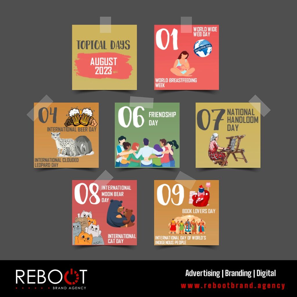 August 2023 arrives with a profound sense of significance as it brings a multitude of important days, each dedicated to a unique cause or historical event. At Reboot Brand Agency, we understand the importance of staying connected to the world around us and all its meaningful occasions. In this blog, we celebrate and delve into the various days that make August 2023 a month to remember.
