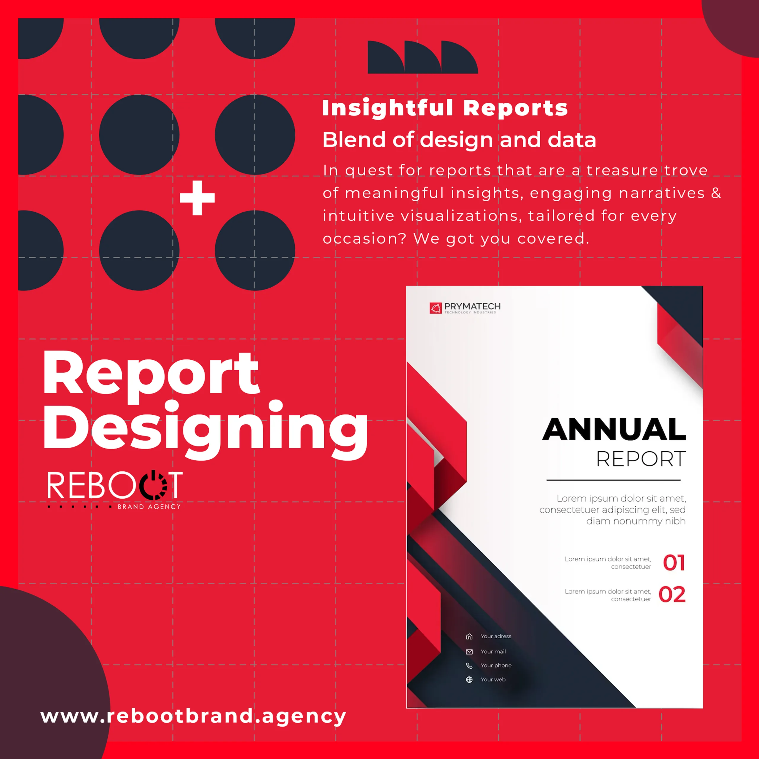 Your expertise deserves to be showcased to the world. Our experts at Reboot Brand Agency blend data with stunning design to create reports that not only highlight your achievements but also underscore your authority in your industry. Each report becomes a reflection of your brand’s expertise and professionalism, leaving a lasting impression on your stakeholders.